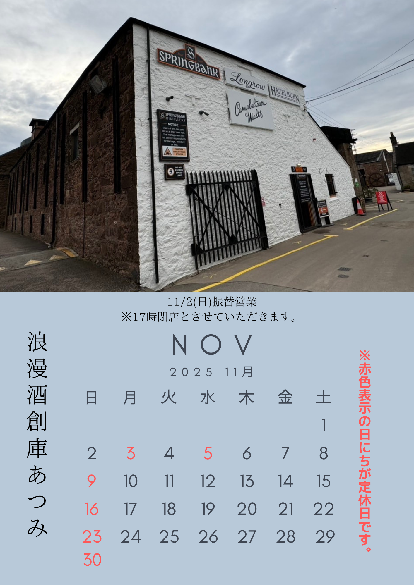 ●11月定休日のお知らせ●