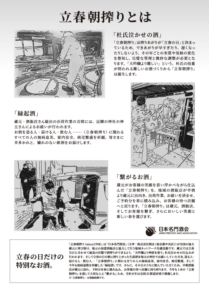こちらは、春を迎えるめでたい立春の日に搾る祝酒です。